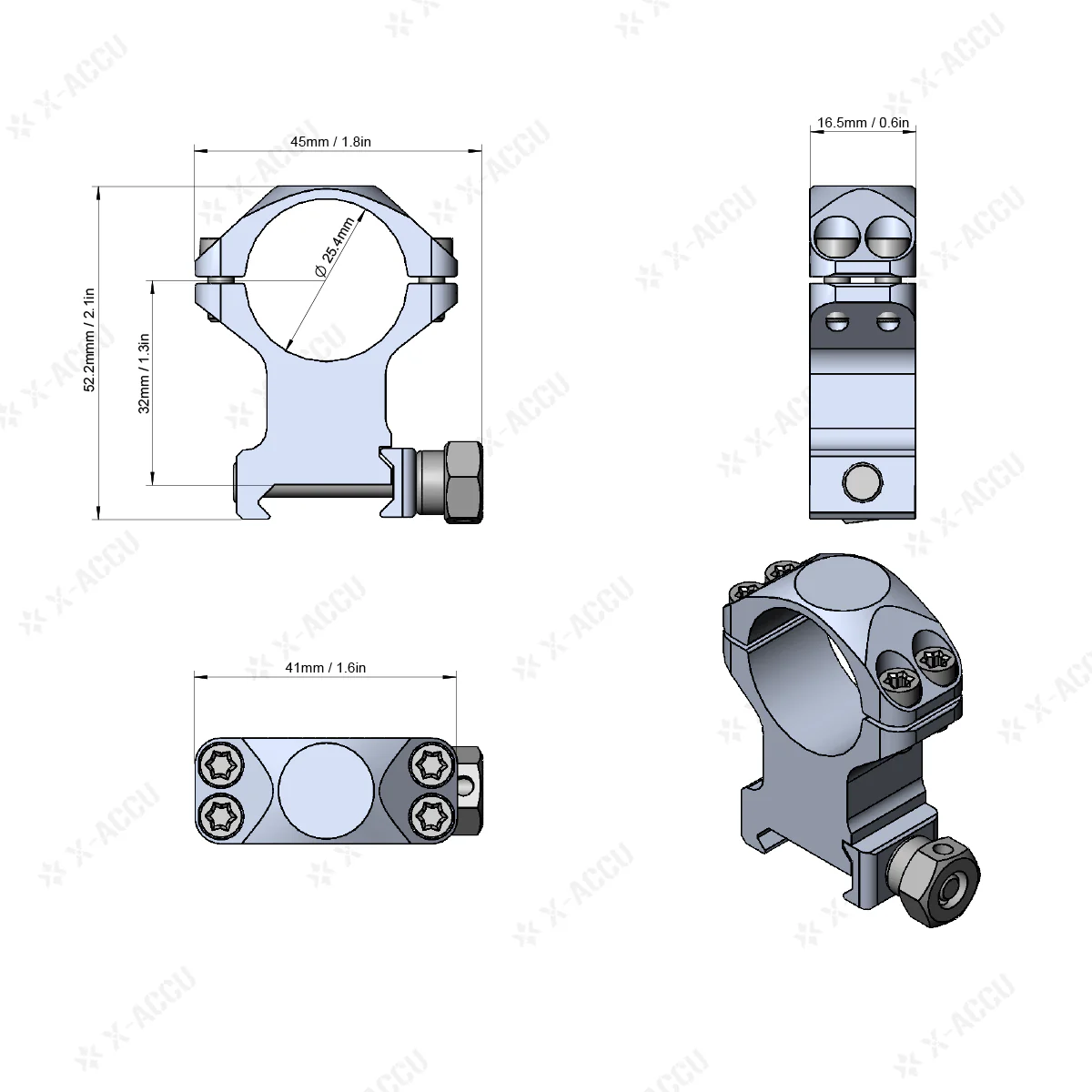 25.4mm X-Accu 1.25in Low Profile Picatinny Rings