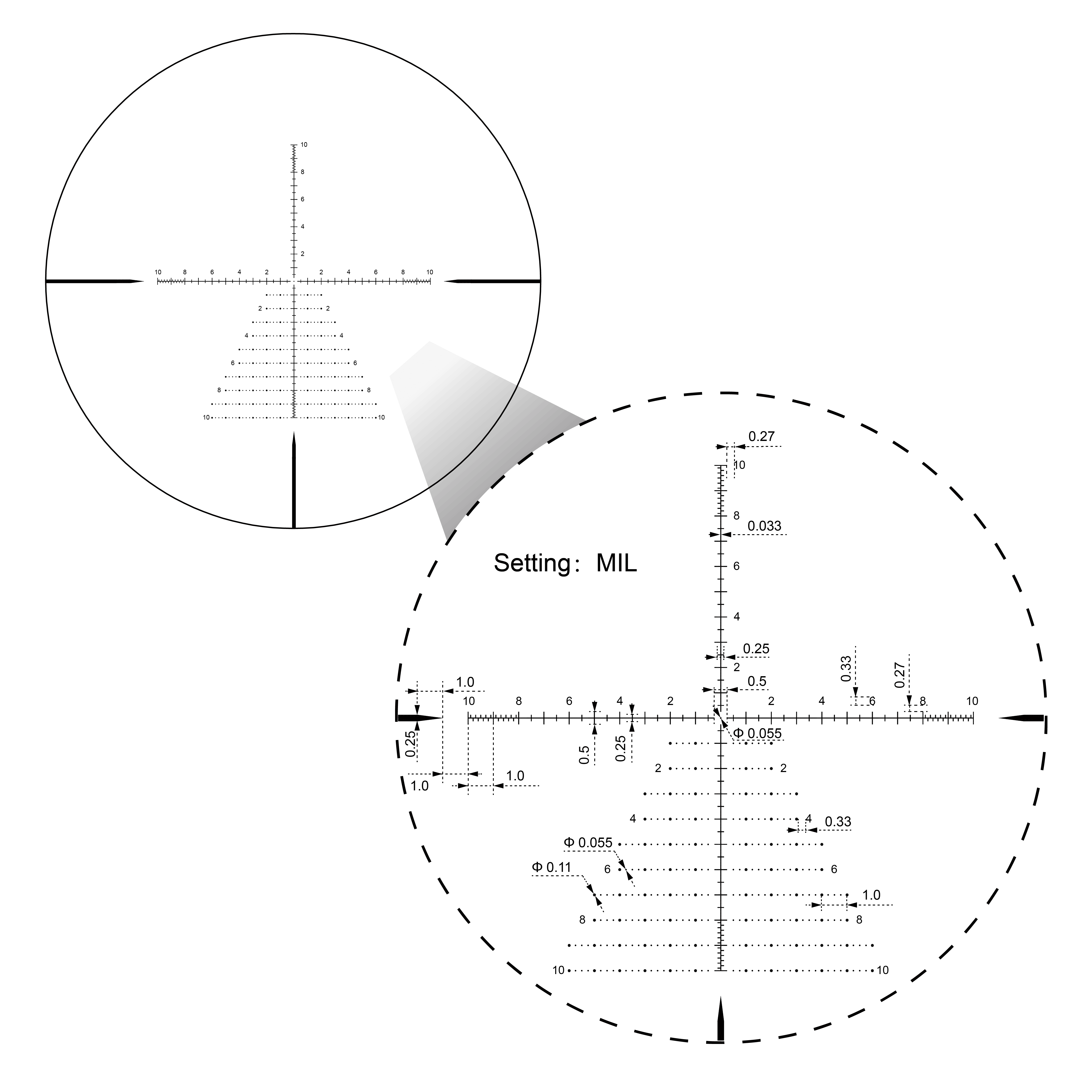 • 1/10 MIL Adjustments with Audible Clicks, Allow for Precise Calibration, Focus Min from 25 Yards