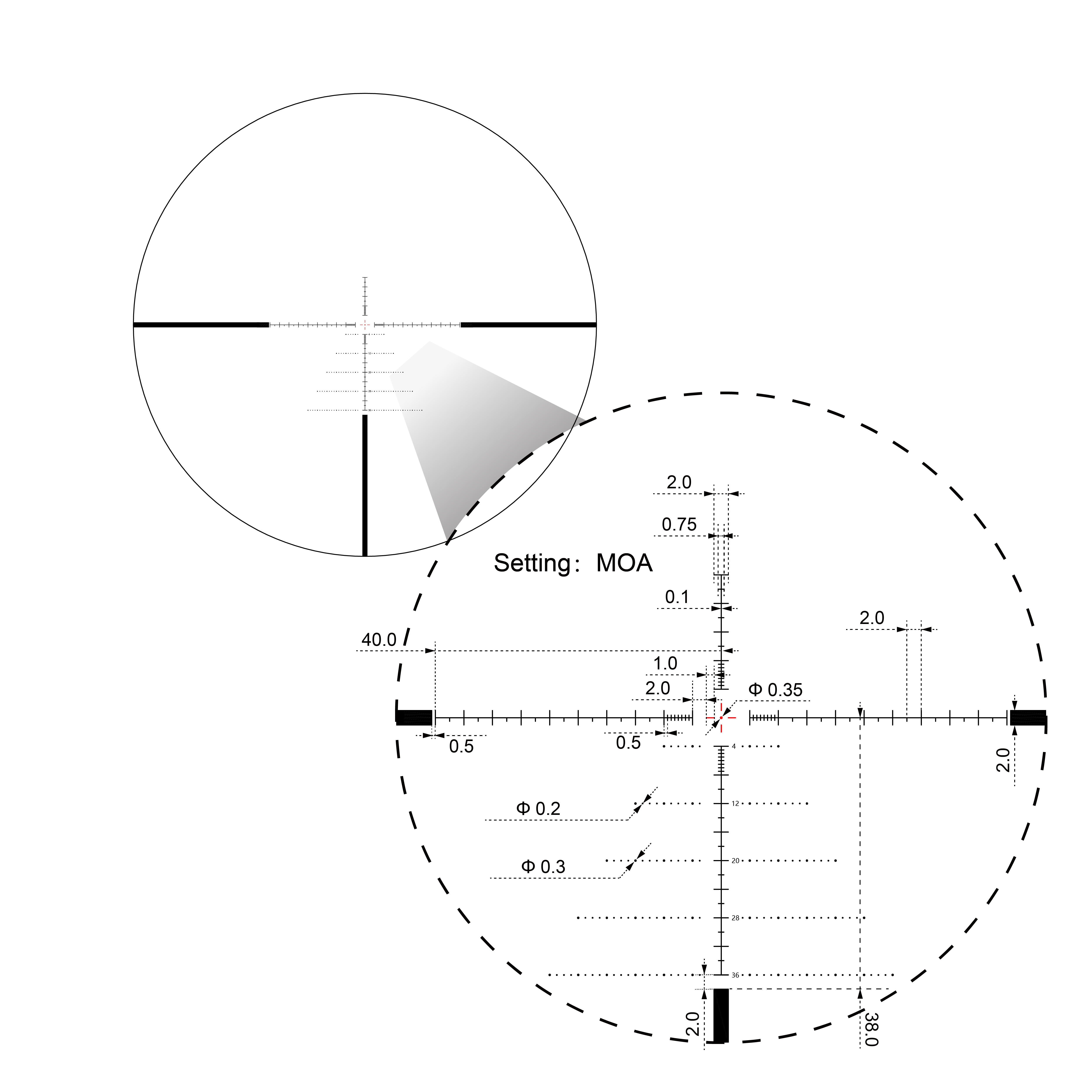 ā¢Ā First Focal Plane Etched Glass VSE-3 MOA Reticle for Precise Range Calculations at Long Distances