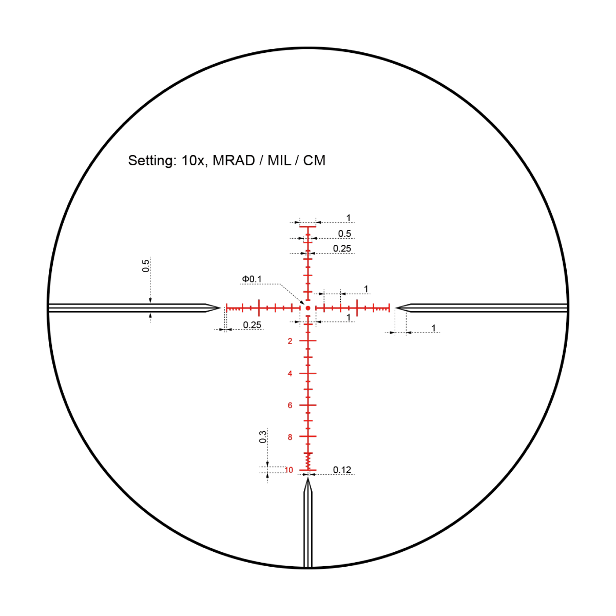 · Zero-Stop Turret System, 1/10 MIL 1cm 0.1 MRAD Adjust, 30mm Monotube.